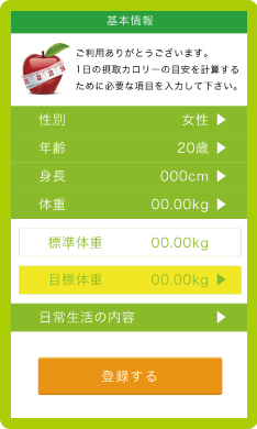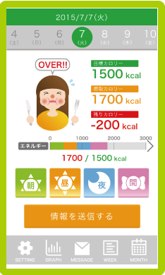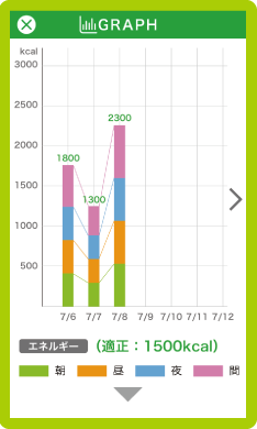 キャラクターアイコンが栄養を取り過ぎかどうか表情でおしえてくれるので、一目で確認できます。