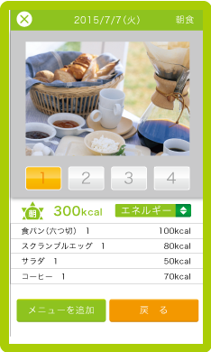 また、料理や食品を増やしたり削除したり量の変更も可能です。